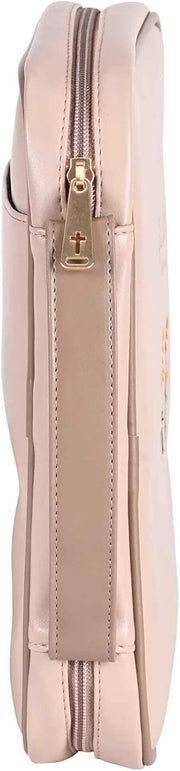 Soft Body Style Tan Polyurethane Bible Case With Embroidered Flowers;