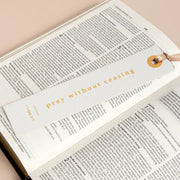 Share the power of prayer with our Pray Without Ceasing Bookmark! This elegant bookmark is perfect for spreading the importance and power of daily prayer to everyone you encounter. With its stunning letterpress design and gold foil accents, it’s an ideal way to mark your favorite verses in the Bible. Gift this lovely bookmark to friends and family, or share it with members of your Bible study group to inspire and uplift their spirits.