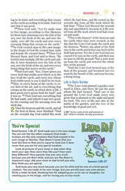 - Twenty special pages—Focus on topics such as famous people of the Bible, highlights of the life of Jesus, how to pray, and the love passage for kids, all with a jungle safari theme