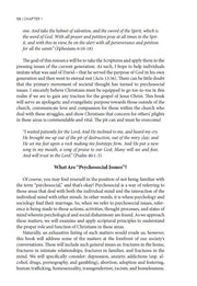 "Christians must rise to their generation’s needs and apply the gospel to those needs in sincerity, love, and truth. There can be little doubt that the age we find ourselves in revolves around matters in the psychosocial realm. This book seeks to address several of these critical needs through helpful research, sound biblical principles, and loving discussion. For that reason, this book serves a key apologetic purpose. Defending the faith necessitates sound doctrine, and it also requires disciples to meet our audience in the place where they are. As such, this book is written to Christians to facilitate constructive dialogue with those outside of the church demanding answers for today’s prevalent issues. This book is also composed to persuade Christians to be active in attending to psychosocial needs in the ways that God expects, demands, and authorizes. Finally, this book will respond to those who have left the church, or who are struggling with a perceived inattentiveness of the church toward the needs of real people in need."