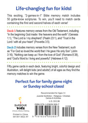 This exciting, “2-games-in-1” Bible memory match game includes 50 gotta-know scriptures. To win, you’ll need to match cards containing the first and second halves of each verse!