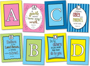 This language card set will help young learners memorize scripture by connecting Bible verses with letters of the alphabet. Two-sided language cards feature a short, easily memorized Bible verse on one side and a corresponding uppercase letter of the alphabet on the reverse. Connect Bible verses with letters of the alphabet to reinforce memorization Introduce young students to short, easily memorized Bible verses