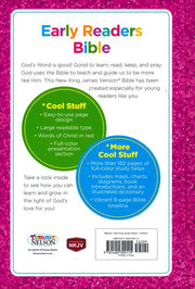 The NKJV Early Readers Bible is an excellent choice for children who are starting to read their first Bible. This trusted study Bible is geared toward children ages 7 to 10 years and comes with a newly designed, highly embellished hardcover package. This engaging Bible for early readers features the respected New King James Version and 192 additional pages of helpful maps, charts, articles, study tools, and more.
