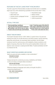 The ESV Large Print Thinline Bible includes the full ESV text in a readable, large type size, while maintaining a portable format at one inch thick. Available in multiple cover options, the ESV Large Print Thinline Bible is a great choice for easy transport.