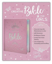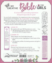 The My Creative Bible for Girls is an illustrated journaling Bible designed to help young girls to grow closer to God through art and creativity. This unique Bible helps young girls to engage with God's Word with wide margins for notes, along with lined illustrations for coloring dispersed throughout the Bible pages.