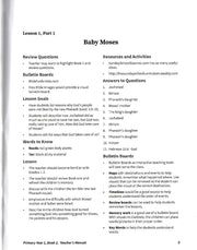 From Egypt to the Promised Land begins with the birth of Moses and tells how Moses was chosen by God to lead the children of Israel out of Egyptian bondage. It concludes with Joshua leading the twelve tribes to settle in Canaan. The Teacher's Manual divides each lesson into 2 parts, suitable for a Sunday/Wednesday schedule. It includes lesson goals, words to know, a basic lesson outline and a list of online resources.