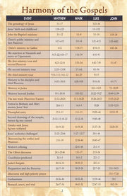 - Harmony of the Gospels showing where each story appears in the four Gospels