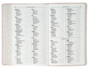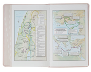 Inside, the text is printed in a generous 14-point font, arranged in a double-column format, making it effortless to read for women who prefer larger print to ease eyestrain. Navigation is seamless with a cream satin ribbon marker, thumb indexing for swift access to each book, and a thematic Scripture verse finder. Study tools enrich the Bible reading experience and include a concordance, the words of Christ highlighted in red ink, cross-referencing, and eight full-color maps that illuminate biblical settings. A one-year reading plan at the back provides a structured guide for daily Scripture reading, and a presentation page at the front allows for a personal note, perfect for gifting.