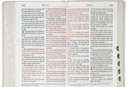 With its soft blush floral design and easy-to-read giant print, the Blush Floral Faux Leather Standard-size Giant Print KJV Bible Thumb Index is a lovely choice for women who want a Bible they can turn to every day.