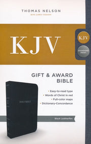 Featuring the beautiful and trustworthy KJV translation, the KJV Gift and Award Bible is a special-occasion Bible that is given to recognized individuals or groups. The affordable price of this Bible makes it convenient to buy in bulk and is ideal for celebrating graduations, baptisms, birthdays, new church attendees, and personal or group achievements. This Bible includes a special presentation page, the Words of Christ in red, an easy-to-use dictionary-concordance, charts, maps, and comes in the beautiful new Thomas Nelson KJV font.
