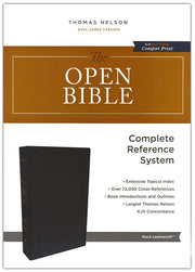 The study Bible that gets you quickly and fully into the Word. Find what you need! The Open Bible, King James Version is designed for the hungry reader. This Bible is filled with amazing study aids including comprehensive book introductions and outlines, 64-page concordance, Read-Along references and translation notes, and the classic Biblical Cyclopedic Index covering more than 8,000 textual entries.