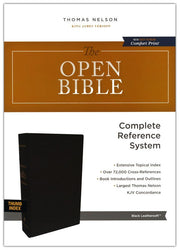 The study Bible that gets you quickly and fully into the Word. Find what you need! The Open Bible, King James Version is designed for the hungry reader. This Bible is filled with amazing study aids including comprehensive book introductions and outlines, 64-page concordance, Read-Along references and translation notes, and the classic Biblical Cyclopedic Index covering more than 8,000 textual entries.