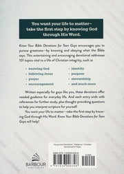You want your life to matter—take the first step by knowing God through His Word. Know Your Bible Devotions for Teen Guys will help!