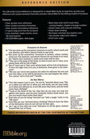 The LBS Column Reference is designed for in-depth Bible Study. Its large fount, 95,000 cross references and 14,000 translation footnotes provide a robust Bible for the lifelong student of Scripture.