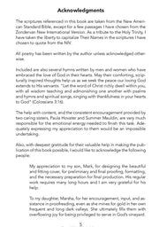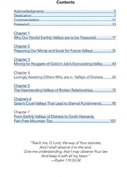 "Throughout the book, you will read about the experiences of others who have mined or are continuing to mine their own painful, challenging valleys. May their Godly examples serve as beacons of light to help us in our quest to keep our love for God and His Word safely intact and the salvation of our oft endangered souls our primary focus. May we fully appreciate their willingness to recall and relate their very painful personal experiences so that we might grow in strength and perseverance."