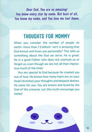 Mommy and Me Devotions includes 100 devotions for Mom to read to her child—bringing parent and preschooler together for a special moment during the day—and accompanying devotions for Mom to read alone on the same topics. A fun and practical means of building lasting faith with your 2- to 6-year-olds! Snuggle up and read these short devotions on God's love, forgiveness, faith, patience, praise, emotions, and more---a wonderful way to introduce preschoolers to prayer.