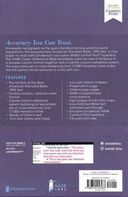 The NASB 1995 Classic Reference Bible meets the needs of those looking for a translation that is trusted by millions of believers around the world. Presenting God's Word in a double column, verse-by-verse format and an updated set of cross-references that are placed in a center column for convenience of access, this Bible also features Zondervan's exclusive NASB Comfort Print typeface- an innovative font that has been designed to maximize the reading experience by minimizing eyestrain. More standard features included to enhance your study of the Holy Scriptures- words of Christ in red, satin ribbon markers, line-matched text for limiting see-through, and a 9.5 point print size.
