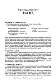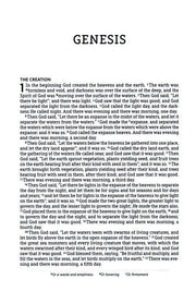 Where appropriate, this Bible changes the format from single column to double column, marking the change in the literary style from prose to poetry. This provides you with a visual cue in your experience, a mental and spiritual rest, that enables you to subtly prepare for the change that has occurred in the passage. This type of change within music - called passaggio - allows you to not merely listen to music, but experience it and heighten your emotional reception of the piece. This musical structure has been intelligently implemented into Scripture, with the goal of deepening your involvement in the movement of the biblical stories as they unfold.