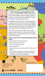 The NIrV Illustrated Holy Bible for Kids helps children ages 4–8 read the full Bible without chapter and verse numbers and footnotes. A text without these distractions can be less intimidating and more engaging, encouraging kids to read more and develop a deeper interest in the Bible. This Bible tells God’s redemption story in a single-column format with a readable font. Nearly every page features full-color, kid-friendly illustrations that bring the Bible stories to life. Ideal for families who value the power of storytelling and God’s Word, and perfect for children eager to read on their own, this is the ultimate first full-text Bible.
