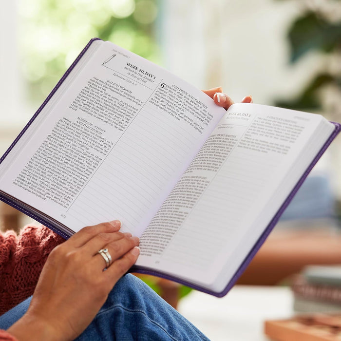 Embark on a 365-day journey through the New Testament with daily readings and generous, lined space for notes.