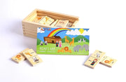 These Dominoes provide fun and entertainment to kids, with cute Noah’s Ark inspired dominoes. Each Domino is made of smooth and polished wood with cute painted and labeled designs. Dominoes come in a nice wooden box with a sliding lid, easy for kids to handle, and helpful when it’s time to put them away.