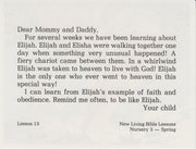 Events from the later life of David, as well as the life of his son Solomon and the prophet Elijah. For children to take home and tell the Bible story to parents / guardians to reinforce Bible class learning.
