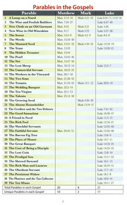 Jesus used parables to communicate important truth about God's Kingdom. Parables of Jesus is a 14-page full color pamphlet that will introduce you to the parables of Jesus. All 39 of these "heavenly stories with earthly meanings" are explained: the Prodigal Son, the Good Samaritan, the Lost Sheep, the Mustard Seed, the Talents, and more. Parables of Jesus is an excellent way to learn more about the stories that show God's purposes in the world. The pamphlet also includes tips for studying parables for Bible Study groups.