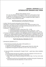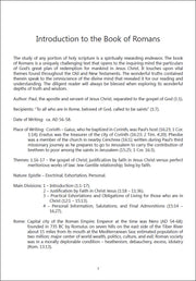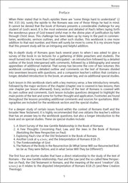Each workbook lesson is divided into several sections examining the text of Romans with an outline/comment/question format. Each major section of text is presented in outline form followed by the author’s comments and a set of questions. Each lesson ends with several questions designed for further thought and application. An introduction and bibliography are also included.