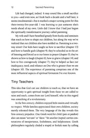 In Sacred Parenting, bestselling author of Sacred Marriage Gary Thomas explores why caring for children is an effective discipline that shapes our souls and forms the character of Christ within us. This is not a how-to book that teaches readers ways to discipline their kids or help them achieve their full potential. Instead of a discussion about how parents change their children, Sacred Parenting turns the tables and demonstrates how God uses children to change their parents. Parents can learn a whole new side of parenting. They'll be encouraged by stories that tell how others have handled the challenges of being parents and how their children transformed their relationship with God.