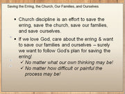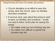 Saving the Erring, the Church, Our Families, Ourselves: A Study of Church Discipline