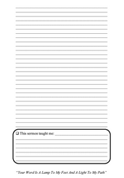 A sermon notebook that boys/men would enjoy using, it has room for writing vital information like the speaker, date, and key text, as well as room for writing notes and blanks for contemplating "What this sermon taught me."