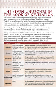 - Overview chart on the seven churches. See each church’s strengths, weaknesses, and promise at a glance. (Includes full-color graphics.)