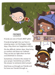 This fun and engaging devotional contains stories and short reflections about loving God and our neighbors, forgiveness, right and wrong, finding joy in sadness, how to be grateful, and many more child-friendly themes!