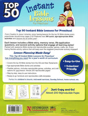 Teach the best 50 lessons from the popular Instant Bible Lessons series. The Top 50 Instant Bible Lessons for Preschoolers includes quick and easy-to-use resources for Sunday school teachers with reproducible hand-outs, arts and crafts templates, puzzles, games and step-by-step instructions.
