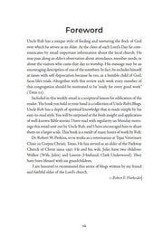 Uncle Rob has a unique style of feeding and nurturing the flock of God over which he serves as an elder. At the close of each Lord’s Day he communicates by email important information about the local church. He may pass along an elder’s observation about attendance, member needs, or about the visitors who came that day to worship. His message may be an encouraging description of one of the members. In fact, he includes himself at times with self-deprecation because he too, as a humble child of God, faces life’s trials. Altogether with this review each week every member of this congregation should be motivated to be “ready for every good work” (Titus 3:1). —Robert F. Harkrider