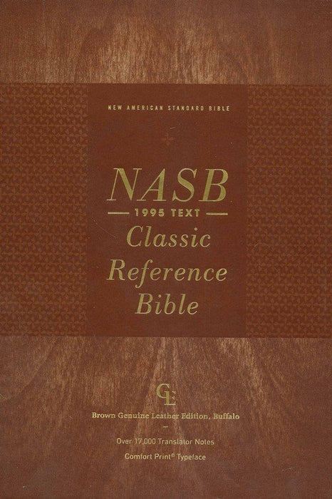 The NASB 1995 Classic Reference Bible meets the needs of those looking for a translation that is trusted by millions of believers around the world. Presenting God's Word in a double column, verse-by-verse format and an updated set of cross-references that are placed in a center column for convenience of access, this Bible also features Zondervan's exclusive NASB Comfort Print typeface- an innovative font that has been designed to maximize the reading experience by minimizing eyestrain. More standard features included to enhance your study of the Holy Scriptures- words of Christ in red, satin ribbon markers, line-matched text for limiting see-through, and a 9.5 point print size. This edition has an exotic buffalo leather cover with raised spine hubs and art-gilt page edges, with gilt line and perimeter stitching- all meant to bring elegance and beauty in the experience of reading God's special revelation in the NASB 1995 Classic Reference Bible.