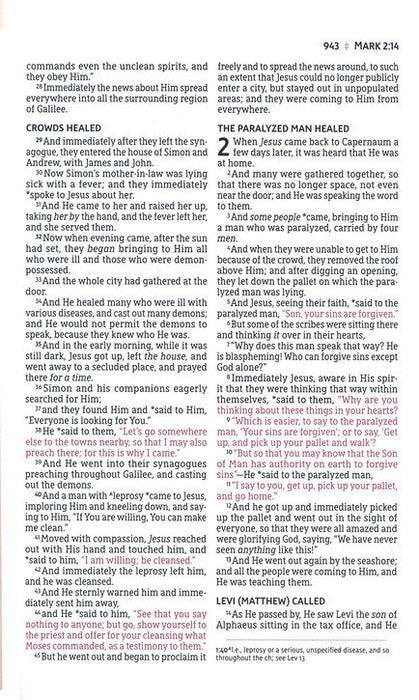 The NASB 2020 Large-Print Thinline Bible delivers God's Word to you in a translation that prioritizes the meaning of the original biblical languages. With the particular emphasis on enhancing accuracy, modernizing language, and improving readability, this 2020 Edition of the New American Standard Bible translation pairs a large print font with a thin profile. Also printed with Zondervan's exclusive NASB Comfort Print typeface, this Bible has been careful consideration on bringing to you a reading experience that has as minimal eyestrain as possible.