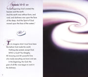 The Creation Story for Children begins with an account of creation that blends scripture with application, asking children to look at the sky, thinking about water, and other creation facts. The second section features facts about some of the animals featured in the illustrations, and the third section walks children through Psalm 139, highlighting the creation of people as well.