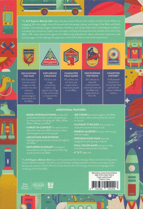 The KJV Explorer Bible for Kids helps kids place God’s Word in the middle of God’s world. Within its engaging, full-color pages, kids will interact with the people, places, and things of the Bible and God’s creation. Fascinating images, illustrations, timelines, and study helps show archeological evidence, introduce key characters, explain new concepts, and help kids experience the wonder and truth of the Bible. QR codes placed throughout the Bible bring educational videos, discussion questions, and activity pages to life, helping kids apply key truths of the Bible to real world experiences.