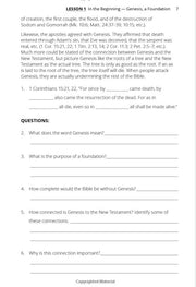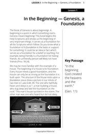 The workbook (covering Genesis 1-11) shows students the way things were In the Beginning and how that impacts the rest of the Bible and, consequently, their own lives. Everything was perfect in the beginning: man lived in paradise in Eden. Sin changed that, and, eventually, things got so bad that God destroyed the world which He had made with the Flood; however, that resulted in a new beginning for mankind.