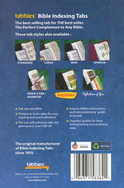 Quickly locate the books of the Bible and add style to your copy of the Good Book with these popular Bible tabs. They're made in the U.S.A. by Tabbies who have been manufacturing Bible tabs since 1955.