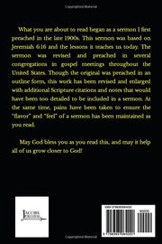 What you are about to read began as a sermon I first preached in the late 1900s. This sermon was based on Jeremiah 6:16 and the lessons it teaches us today. The sermon was revised in the early 2000s and preached in several congregations throughout the United States. Though the original was preached in an outline form, this work has now been revised and enlarged with additional Scripture citations and notes that would have been too detailed to be included in a regular public discourse or sermon. At the same time, pains have been taken to ensure the “flavor” and “feel” of a sermon has been maintained as you read.