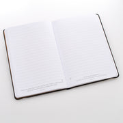 A perfect companion for writing, this super supple tan writing journal / notebook is buttery soft in your hand. Favorite Scripture from Psalm 46:10 is artfully positioned and debossed on the front cover.