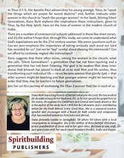 There are a number of controversial subjects addressed in these few short verses, and it’s the author’s hope that, through this study, we come to understand what God’s expectations are for the 21st century woman. She poses questions such as: Can we over-emphasis the importance of taking seriously each word our Lord has recorded for us? Can we be “too” careful about obeying His commands? Can we afford to carelessly neglect His instructions?