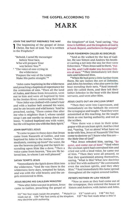 With a variety of unique and traditional cover designs available, this Bible is beautiful inside and out. Fitting most purses, laptop bags, and glove boxes, the NKJV Value Thinline Bible is a great choice to take with you on the go. Additional features include a finely designed new layout, the words of Christ in red, a reading plan, and full-color maps.
