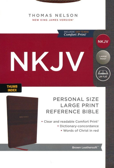 The NKJV Holy Bible Personal-Size Large-Print Reference Bible is a handy compact Bible that features a generous large print font for easier reading. Presented in the full text of the trustworthy New King James Version, the 10 point type is an easy-to-read size that is printed along with cross-references for easy biblical navigation.
