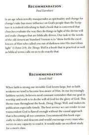Do Things Well is a book that is concerned about churches evaluating the way they do things in light of the divine will and making changes that are biblically driven. It is to help Christians raise the bar in their worship and service to God. Students are challenged to ask, "Are we giving our best?" and, "How can we do better?". In these 13 lessons the writers address the big things we do each week, as well as the behind-the-scenes things that get overlooked.
