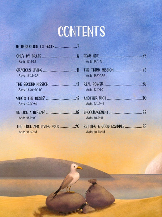 Volume One contains stories from the beginning of Acts up to chapter thirteen, and Volume Two contains chapters fourteen to twenty–eight.