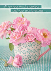 Like a favorite cup of tea, these cards share the warmth of God's love and tender care. This assortment of 4 different photographic images includes: pink roses in a turquoise floral teacup, purple and yellow flowers in white teacup, dark pink roses in a turquoise teacup, and coral roses in a white teacup . Each box holds 12 cards (4.75" x 6.75"), 4 designs, 3 each, 12 envelopes. KJV scripture is included.