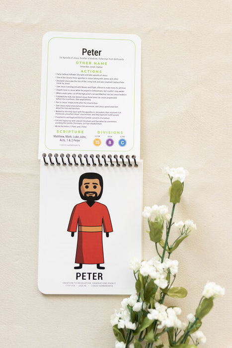 The Generation Spirals contain characters from the Generations illustrations with attached fact cards—these Spirals offer endless education and interest right at your fingertips. And don't worry, there's no prep necessary; children can flip through these synthetic paper, sturdy Spirals on their own and learn Bible names and details at any age!